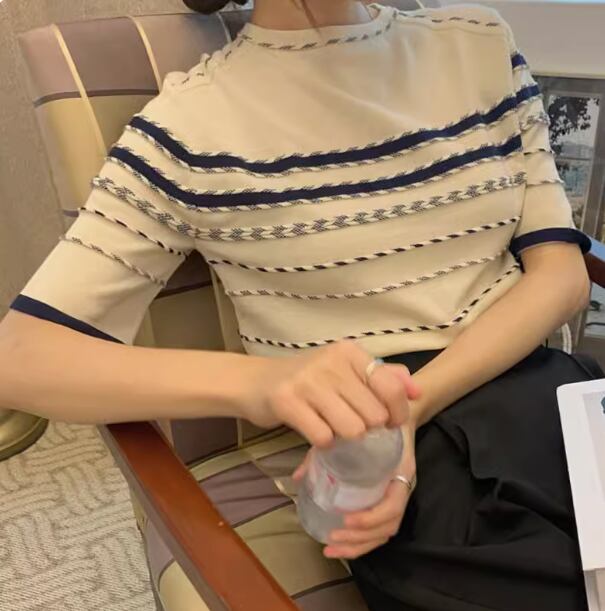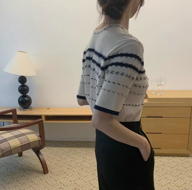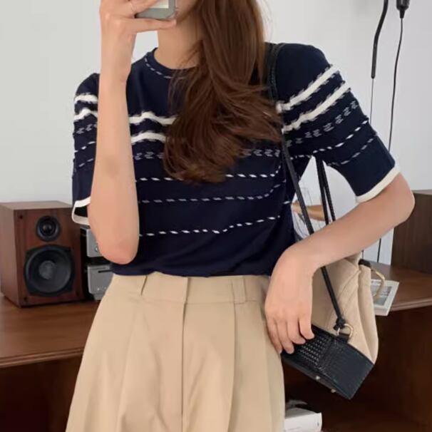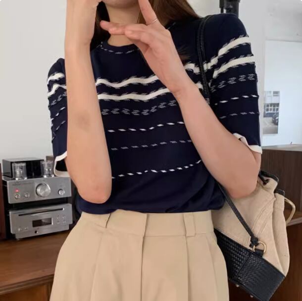 レディース トップス ニット 半袖 ストレート ニット ストレッチ 伸縮性 大人可愛い きれいめ 上品 おしゃれ かっこいい ガーリー 個性的 主役級 存在感 ラブリー キュート カレッジ風 学生風 ボーダー 夏 母の日 クリスマス バレンタイン MTG ママ オフィス ビジネス OL 学生 デート お出かけ リゾート 旅行 レストラン 女子会 休日 ホテル ガーデン ショッピング 合コン コンパ カフェ 婚活 コーデ 着回し フリーサイズ ホワイト ネイビー