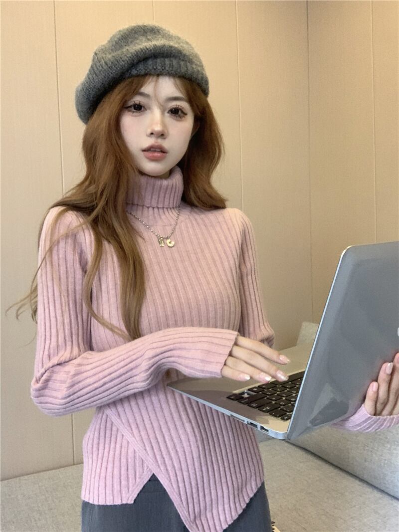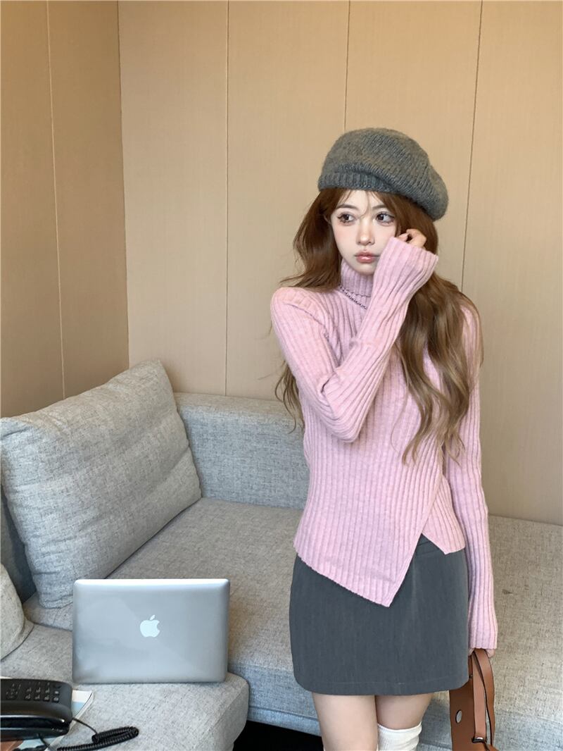 レディース トップス ニット セーター プルオーバー 長袖 ハイネック スリム 細身 ストレート スリット かわいい 大人可愛い きれいめ シンプル カジュアル 上品 おしゃれ レトロ こなれ感 ラフ ガーリー ルーズ ラブリー キュート ナチュラル 無地 秋 冬 ママ 通勤 学生 学校 通学 デート お出かけ 公園 女子会 ショッピング カフェ 韓国 コーデ 楽ちん 暖かい 体型カバー 普段使い 着回し モテ トレンド 流行 インスタ映え ゆったり ゆる フリーサイズ ホワイト ピンク