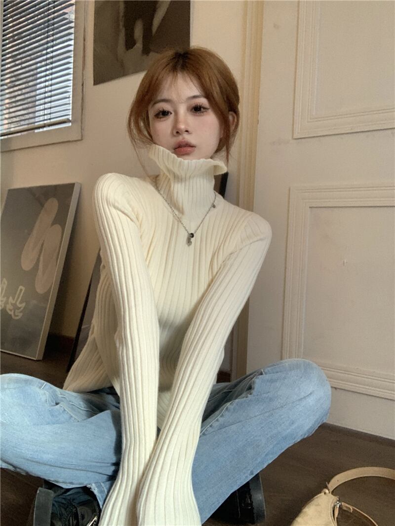 スリムなシルエットとハイネックデザインがおしゃれなニットセーター。シンプルなデザインながら、レトロな雰囲気漂う大人可愛い一枚です。ストレートなシルエットがスタイルアップ効果を叶え、スリットが入った裾は動きやすさも抜群。