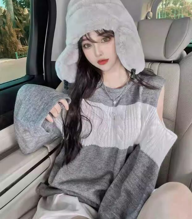 レディース トップス ニット セーター プルオーバー 長袖 オープンショルダー ラウンドネック ストレート かわいい 大人可愛い きれいめ シンプル カジュアル 上品 おしゃれ レトロ こなれ感 ラフ ガーリー ルーズ ラブリー キュート ナチュラル コントラストステッチ 秋 冬 ママ 通勤 学生 学校 通学 デート お出かけ 公園 女子会 ショッピング カフェ 韓国 コーデ 楽ちん 暖かい 体型カバー 普段使い 着回し モテ トレンド 流行 インスタ映え S M L XL ゆったり ゆる グレー
