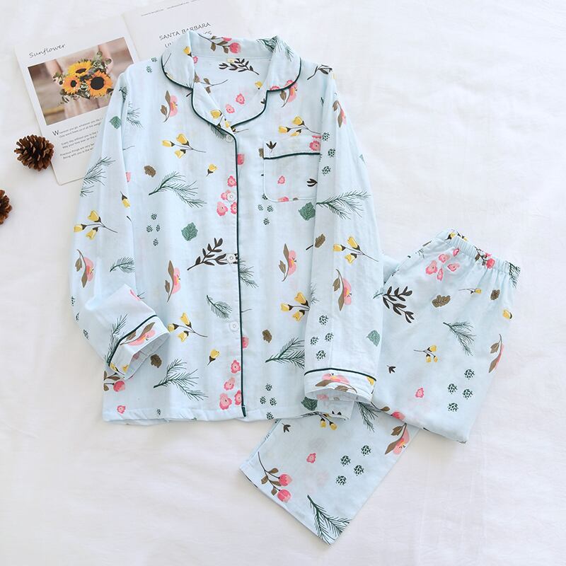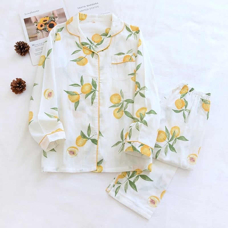 リラックスタイムに欠かせないアイテムとして、長袖で襟付き、前開きにボタン仕様の上下セットがおすすめです。