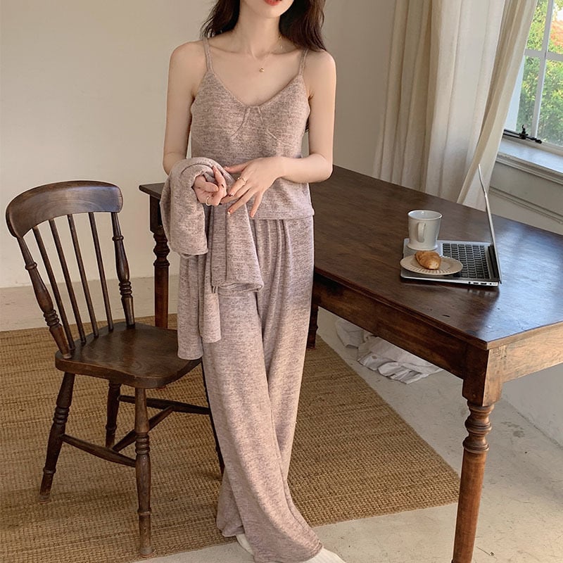 3点セット ナイトウエア パジャマ 上下セット カーディガン ショート丈 長袖 前開き ボタン キャミソール 長ズボン ロングパンツ ウエストゴム ルームウエア 部屋着 かわいい 大人可愛い きれいめ シンプル 上品 おしゃれ かっこいい こなれ感 きちんと ラフ ルーズ 個性的 主役級 存在感 抜け感 オールシーズン シーズンレス キュート ナチュラル ベーシック メンズライク デート お出かけ お泊まり イベント 女子会 休日 普段使い 着回し M L XL 2XL ゆったり ゆる 楽ちん