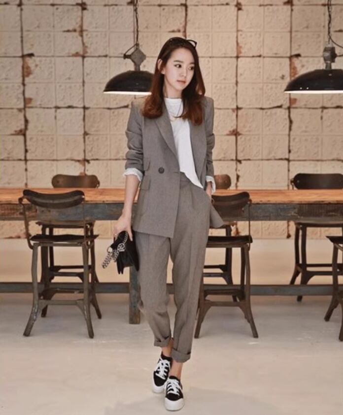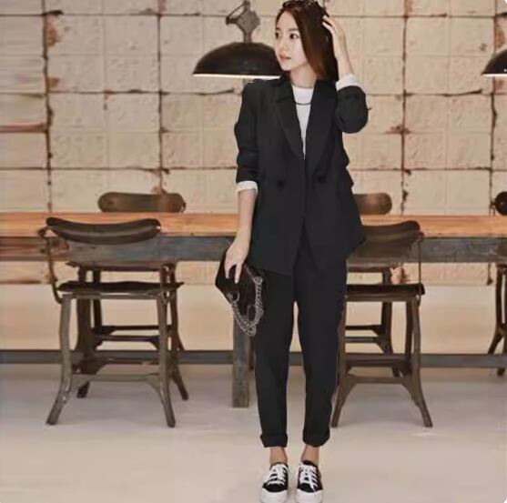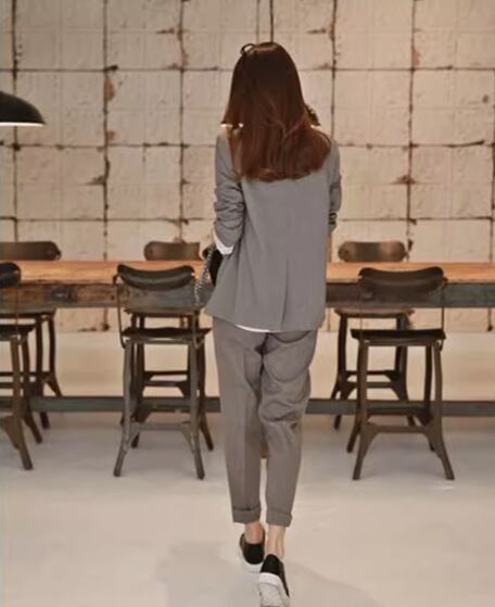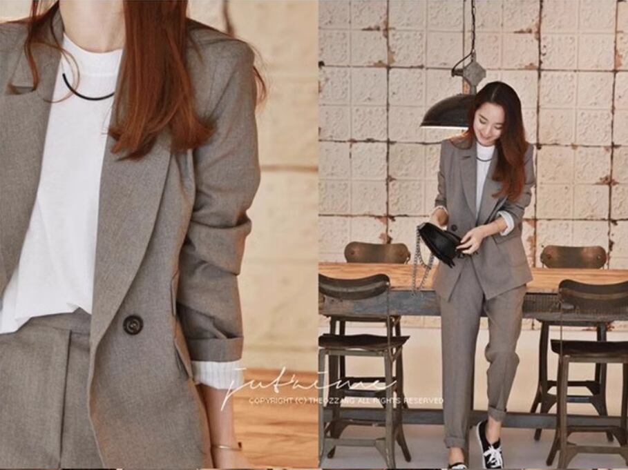 シンプルなジャケットとテーパードパンツのツーピースセット