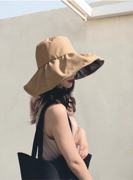 UVカットハットは、夏のアウトドアシーンで欠かせないアイテムです。韓国から取り寄せたこの帽子は、黒地にシンプルで上品なデザインが特徴。広いつばが日焼け防止に効果的でありながら、女性らしいカジュアルさも演出してくれます。あご紐がついているので、風に飛ばされる心配もなし!デートや女子会、ショッピングなど様々なシーンで活躍します。