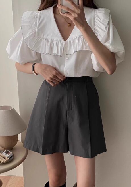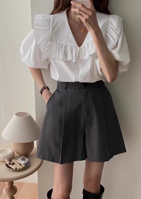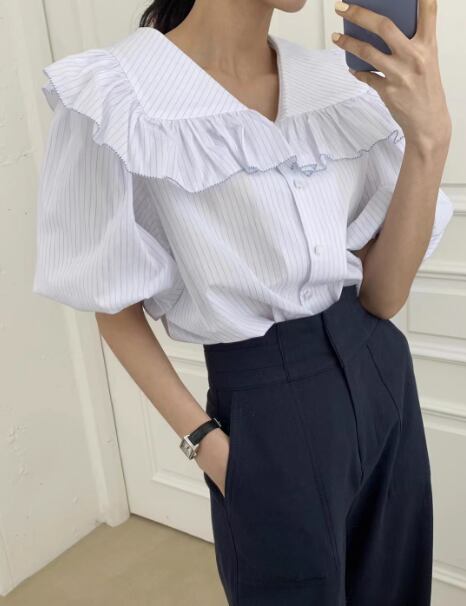 ビッグカラーブラウス レディース トップス シャツ デザイン 長袖 ベルスリーブ プリーツ ボタン かわいい 大人可愛い きれいめ シンプル カジュアル 上品 おしゃれ レトロ こなれ感 ラフ ガーリー エレガント ラブリー キュート クラシカル 無地 春 秋 誕生日 オフィス ビジネス OL 通勤 デート お出かけ パーティー イベント 旅行 レストラン 女子会 休日 お呼ばれ 食事会 韓国 オルチャン コーデ 体型カバー 普段使い 着回し モテ 清楚 トレンド フリーサイズ ホワイト