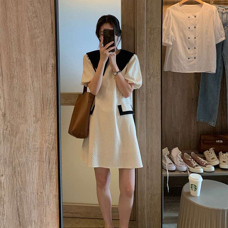 レディース ワンピース デート フレアワンピース ワンピドレス ショート ショート丈 袖あり 半袖 パフスリーブ 襟付き フレア Aライン 切り替えデザイン ドッキング ポケット かわいい 大人可愛い きれいめ シンプル カジュアル 上品 おしゃれ お洒落 レトロ 大人女子 こなれ感 ラフ ラブリー キュート ガーリー 個性的 クール モード系 エレガント モダン 主役級 存在感 抜け感 レディース デート お出かけ 女子会 休日 着回し 普段使い ファッション コーデ スタイル モテ 色展開