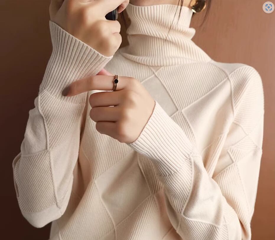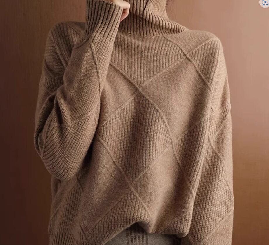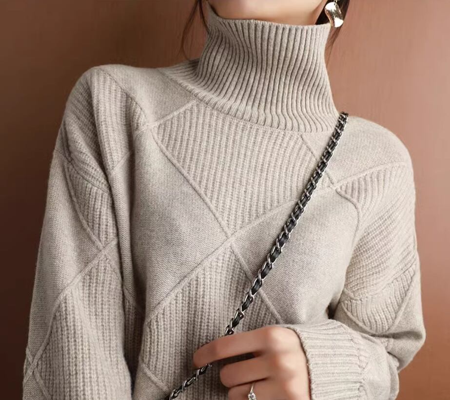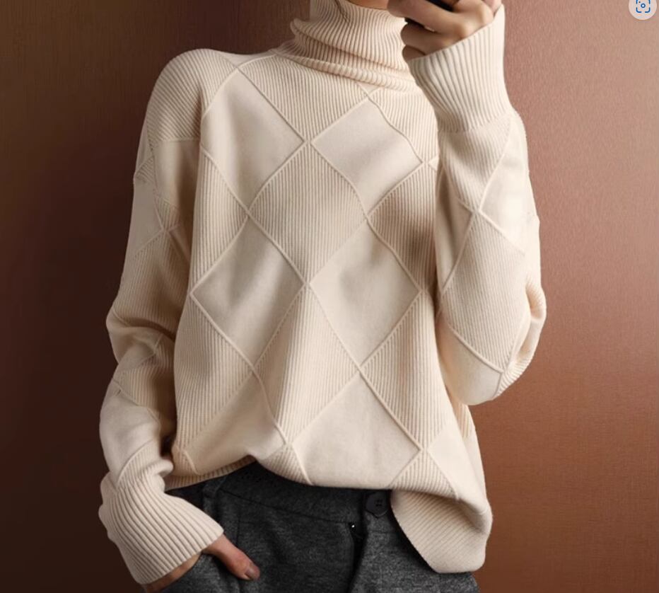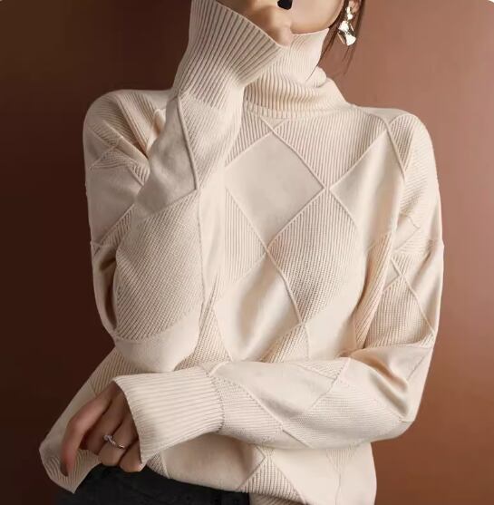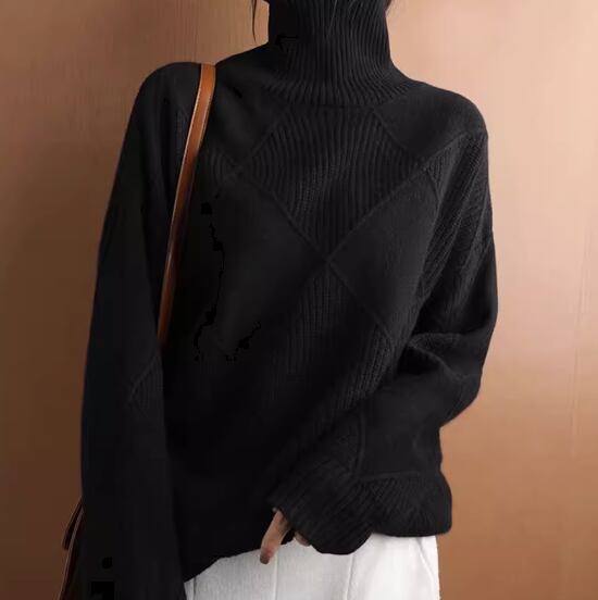 大きめの格子柄がおしゃれなハイネックニットトップス