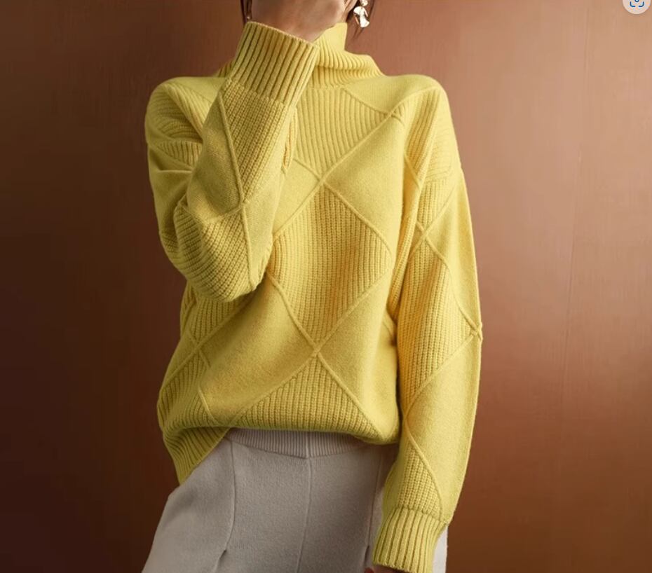 トップス ニットソー セーター 袖あり 長袖 ドロップショルダー ハイネック ストレート ワイド リブニット 伸縮性 かわいい 大人可愛い シンプル カジュアル 大人 上品 おしゃれ お洒落 大人女子 こなれ感 格子柄 秋 冬 10代 20代 30代 40代 50代 60代 レディース 女性用 ママ お出かけ 休日 着回し 普段使い 楽ちん 体型カバー S M L XL 2XL 黒 ブラック オフホワイト ベージュ イエロー キャメル