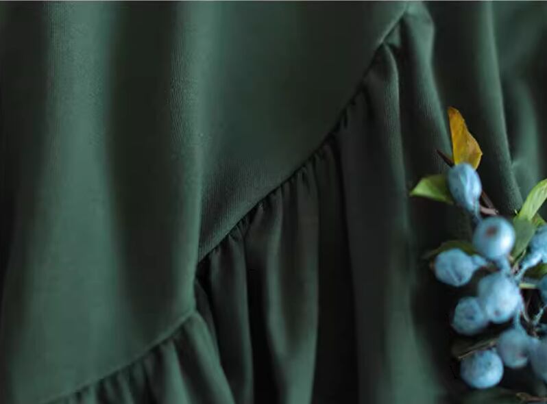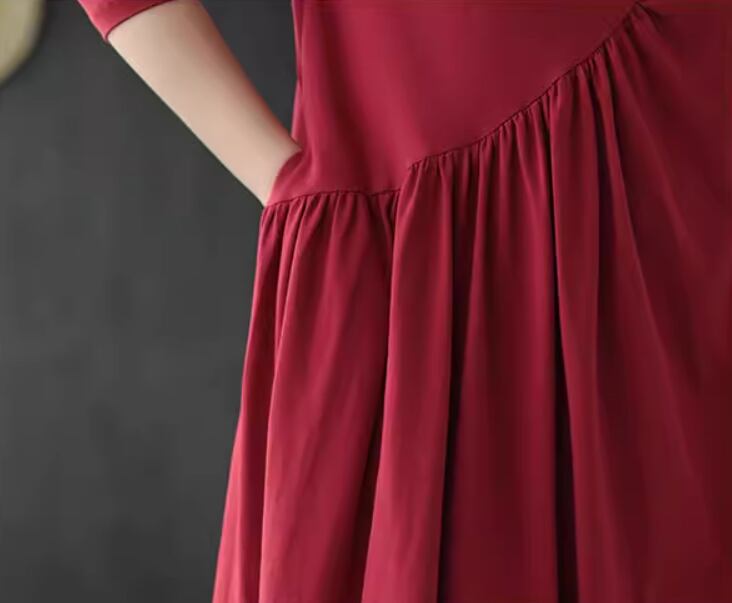 フロント部分のギャザーデザインがおしゃれなロングワンピース