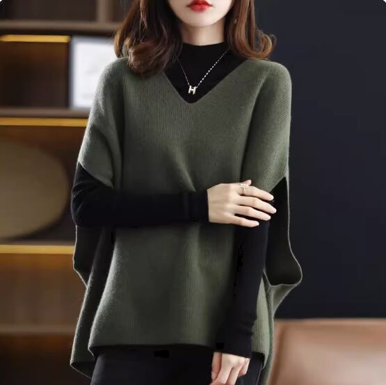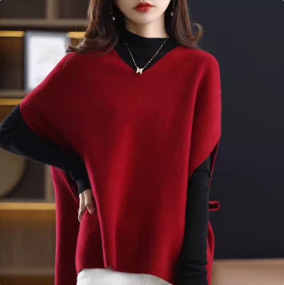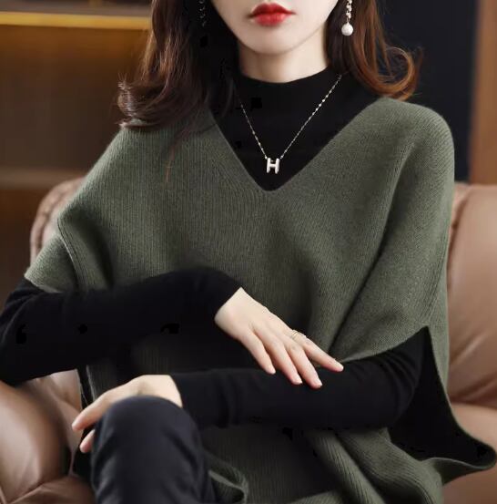 トップス プルオーバー 袖あり Vネック ストレート ワイド リブニット 伸縮性 シンプル カジュアル 大人 上品 おしゃれ お洒落 こなれ感 無地 秋 冬 20代 30代 40代 レディース 女性用 ママ お出かけ 休日 着回し 普段使い 重ね着 楽ちん 体型カバー M L 青 ブルー 緑 グリーン ベージュ ブルゴーニュ
