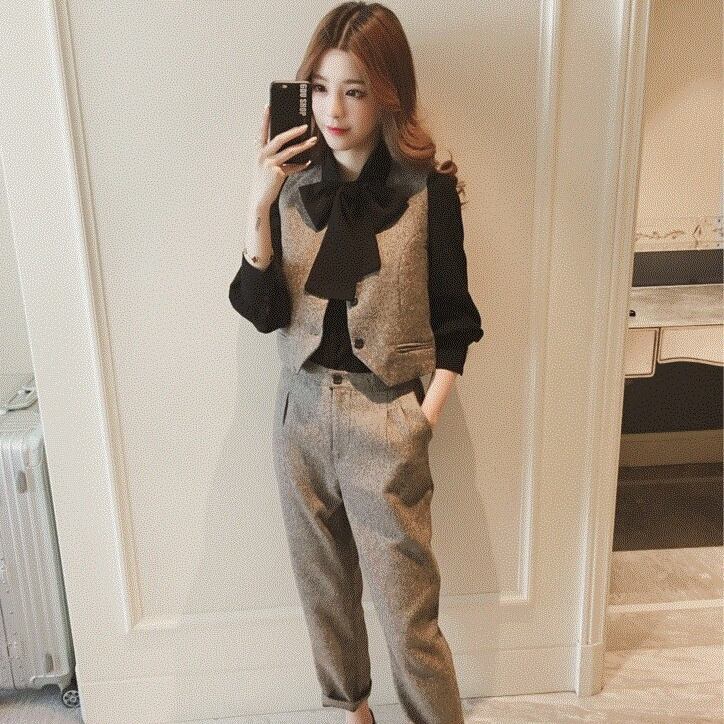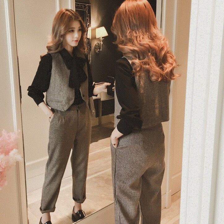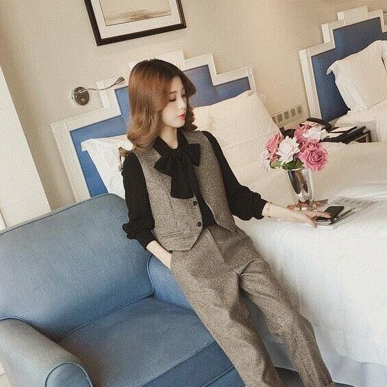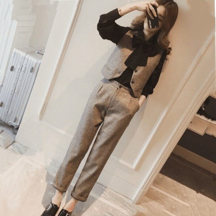 ベスト、シャツ、そしてシンプルで洗練されたストレートパンツがセットになっているので、着るだけでおしゃれ上級者に変身できます。