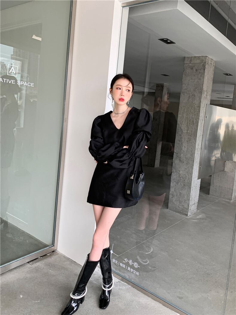レディース ワンピース デート ワンピドレス ショート ショート丈 袖あり 長袖 ボリューム袖 パフスリーブ Vネック 襟なし ストレート Iライン 切り替えデザイン ポケット かわいい 大人可愛い きれいめ シンプル カジュアル 上品 おしゃれ お洒落 レトロ 大人女子 こなれ感 ラフ ラブリー キュート ガーリー 個性的 クール モード系 エレガント モダン 主役級 存在感 抜け感 レディース デート お出かけ 女子会 休日 着回し 普段使い ファッション コーデ スタイル モテ プレゼント