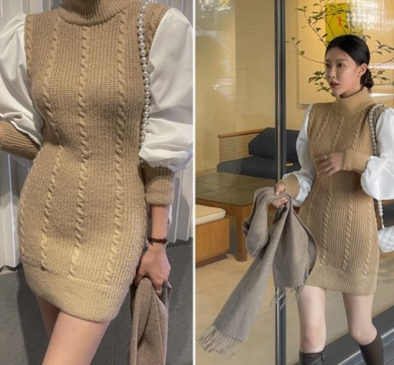 このニットワンピースは、大人女子にぴったりのきれいめデザイン。立体的な切り替えデザインとボリューム袖が、さりげない個性を演出してくれます。シンプルなスタイルながら、異素材MIXの編み込みが上品な印象を与えます。ボディーラインにフィットするタイトなシルエットで、どんな体型でも華奢に見せてくれるIライン。ショート丈なので着まわし力も抜群です。デートや女子会、普段使いにもぴったりな一着です。女性らしさと抜け感を演出する、主役級の存在感を持つワンピースです。