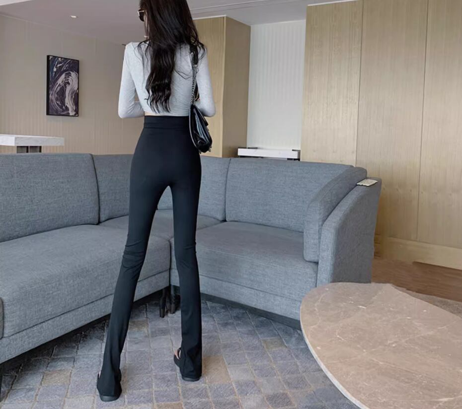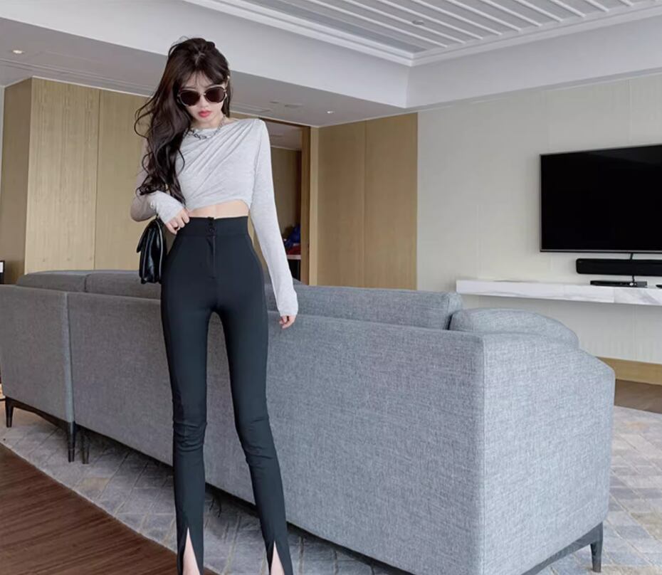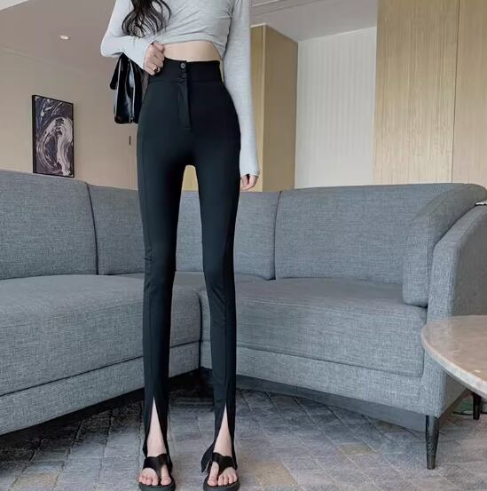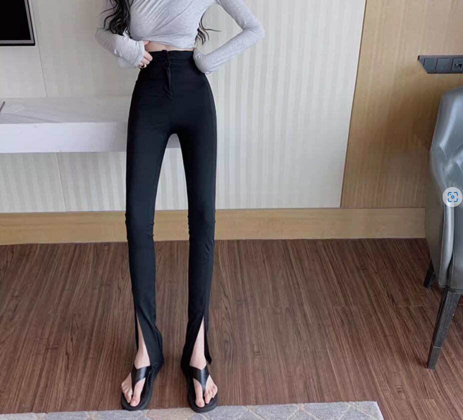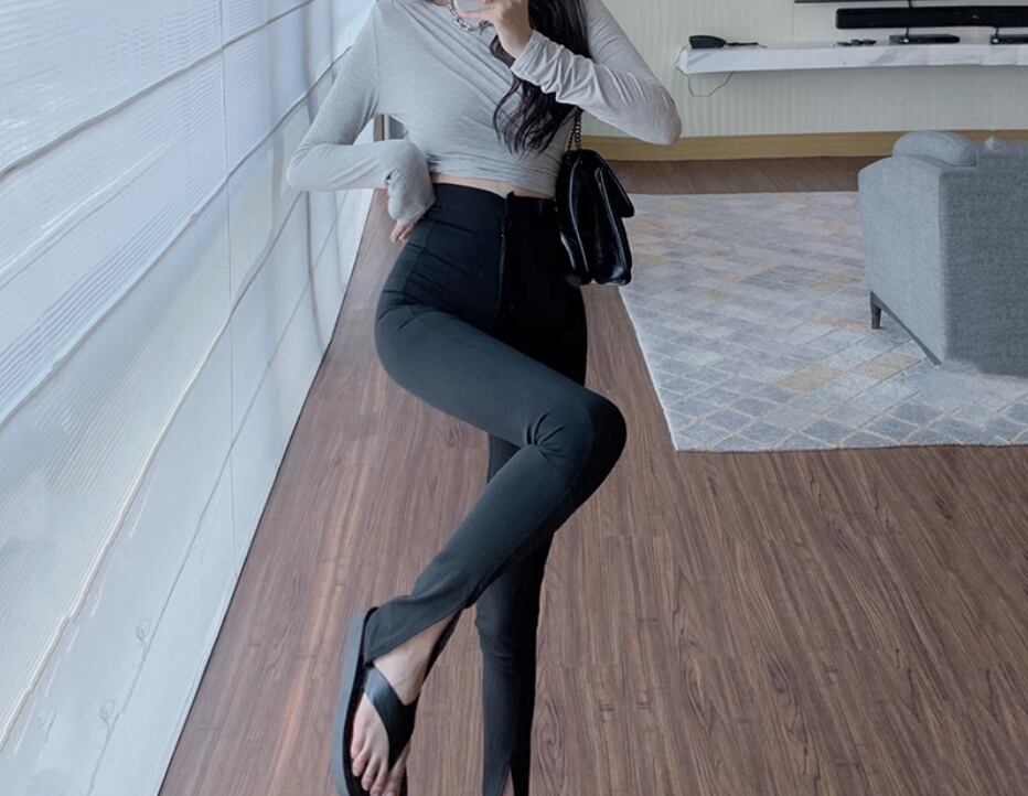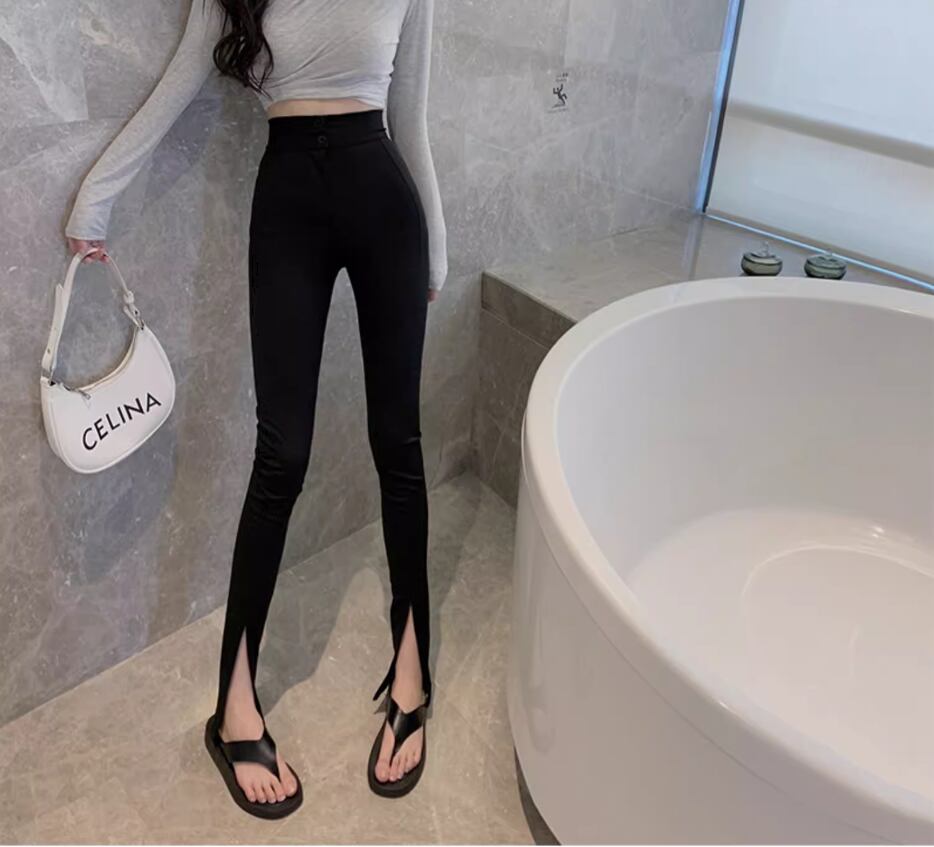 ボトムス パンツ レギンス レギパン ロング丈 スリム タイト 細身 スリット ファスナー ハイウエスト 伸縮性 シンプル カジュアル かっこいい こなれ感 個性的 無地 春 夏 10代 20代 30代 レディース 女性用 お出かけ 休日 着回し 普段使い 楽ちん 美脚 脚長 S M L 黒 ブラック