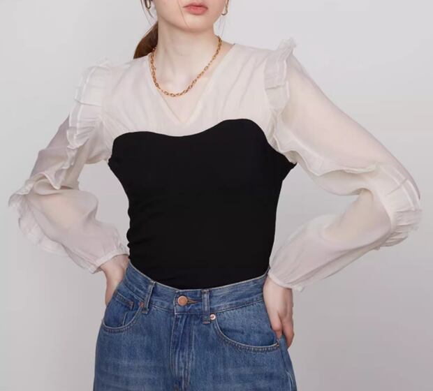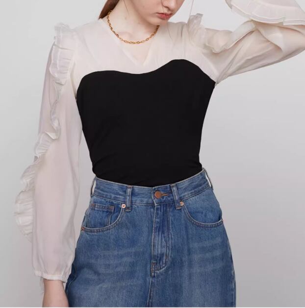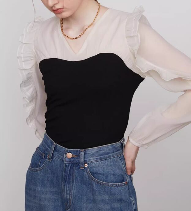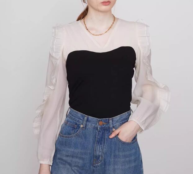 大人可愛いビスチェ風ブラウスが新登場!繊細なパフスリーブや透け感のある素材が、フェミニンな魅力を演出します。シンプルでありながら華やかな切り替えデザインが、大人女子にぴったりの上品さを演出。春の訪れとともに、ナチュラルでシックなスタイルをお楽しみください。