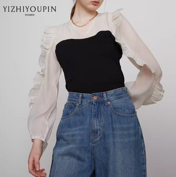 ブラウス ビスチェ風 レディース トップス レイヤード風 長袖 パフスリーブ ラウンドネック 襟なし フェミニン 透け感 切り替えデザイン かわいい 大人可愛い きれいめ シンプル カジュアル 上品 おしゃれ レトロ こなれ感 ラフ ガーリー ルーズ エレガント ナチュラル シック 大人女子 無地 春 秋 ママ オフィス ビジネス OL 通勤 デート お出かけ お泊まり イベント 旅行 公園 女子会 休日 カフェ 重ね着 コーデ 体型カバー 普段使い 着回し S M L XL 2XL 3XL