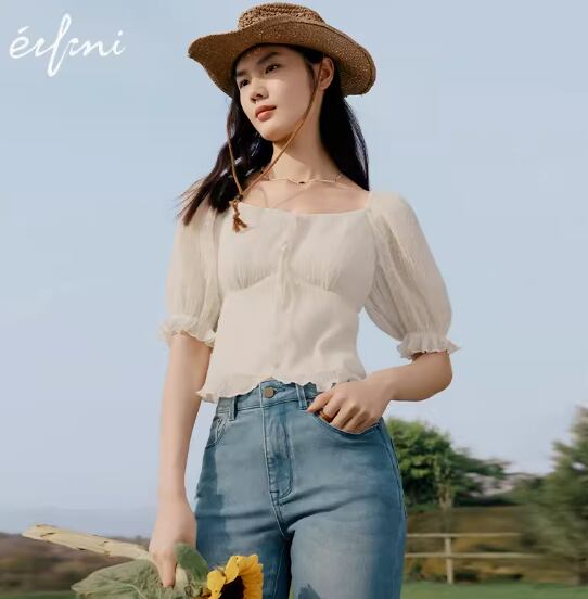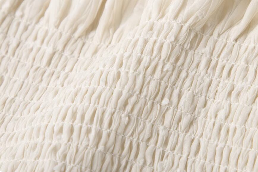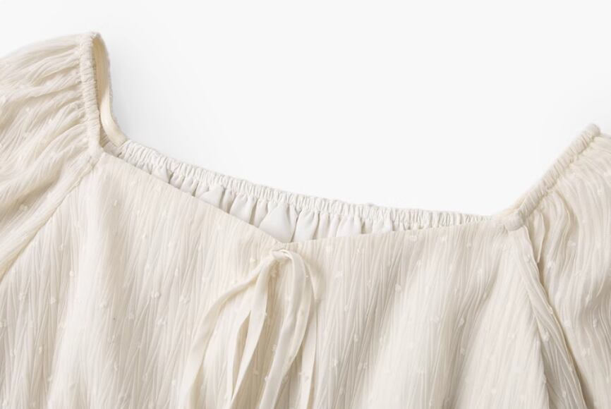 スクエアネックやパフスリーブ、シャーリングデザインなどこだわりたっぷり!