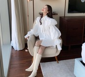 ボリュームのあるパフスリーブとリボンが可愛い長袖ブラウス