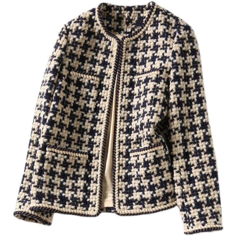 アウター ジャケット ノーカラージャケット ミディアム丈 前開き 襟なし 長袖 ポケット かわいい 大人可愛い きれいめ シンプル 上品 おしゃれ かっこいい きちんと レトロ こなれ感 個性的 主役級 存在感 抜け感 秋 冬 ナチュラル ベーシック クール フォーマル チェック柄 レディース 女性用 ママ OL 通勤 オフィス ビジネス 学生 通学 デート お出かけ お泊まり イベント 女子会 休日 カフェ ショッピング 旅行 レストラン コンパ 重ね着 普段使い 着回し M L XL 2XL