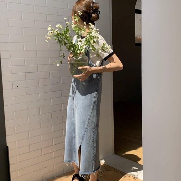 ボトムス スカート ミモレ丈スカート ジャンパースカート ミモレ丈 デニムスカート スリット かわいい 大人可愛い きれいめ シンプル カジュアル 上品 おしゃれ かっこい 大人女子 こなれ感 個性的 レトロ ルーズ 主役級 存在感 キュート クール ナチュラル ベーシック クール メンズライク 無地 レディース 女性用 ママ OL 通勤 学生 通学 デート お出かけ お泊まり イベント 女子会 休日 カフェ ショッピング 旅行 リゾート コンパ レストラン 普段使い 着回し 脚長 S M L XL