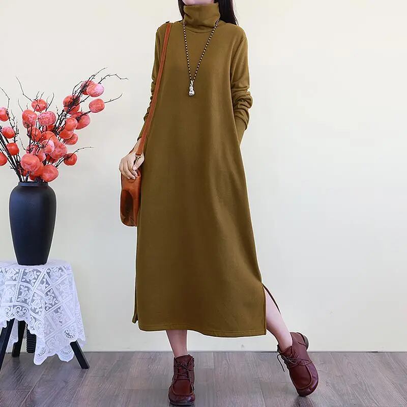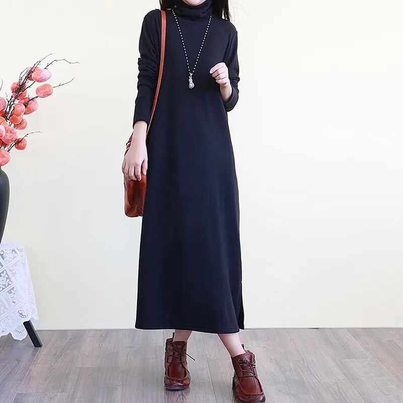 ワンピース ロングワンピース ロング丈 長袖 タートルネック サイドスリット かわいい 大人可愛い きれいめ シンプル カジュアル 上品 おしゃれ かっこいい 大人女子 こなれ感 個性的 きちんと 主役級 存在感 キュート クール ナチュラル ベーシック キュート 無地 秋 冬 レディース 女性用 ママ マタニティOL 通勤 学生 通学 デート お出かけ お泊まり イベント 女子会 休日 カフェ ショッピング 旅行 リゾート コンパ レストラン レイヤード 重ね着 普段使い 着回し M L XL 2XL