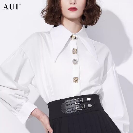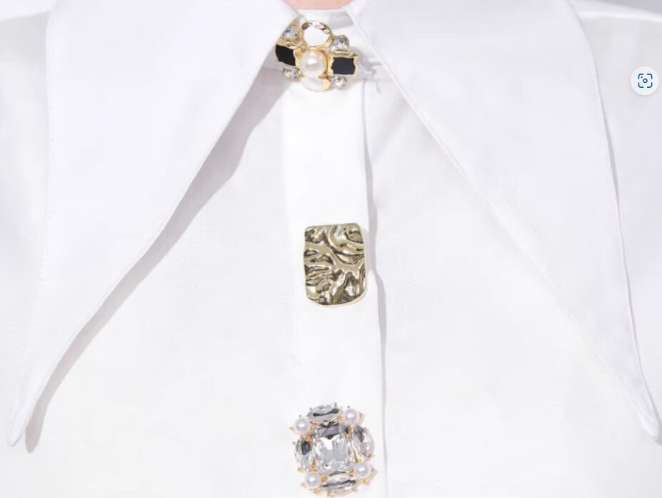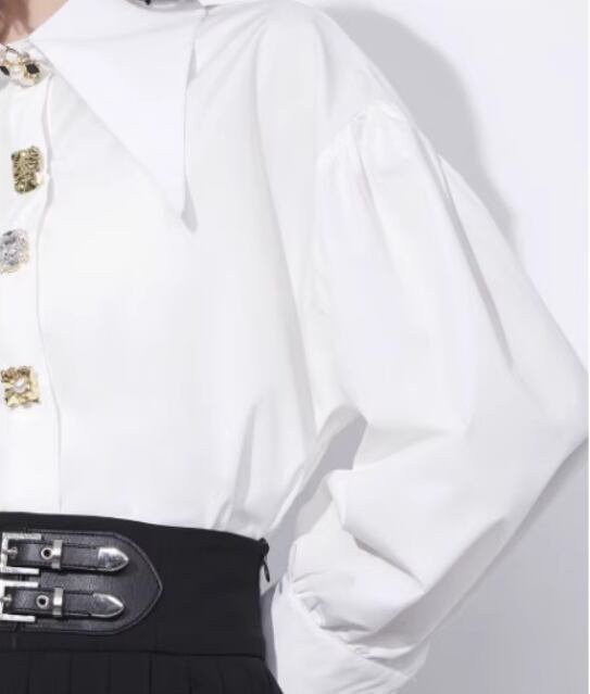 宝石のような大きめビジューがおしゃれな長袖ブラウス