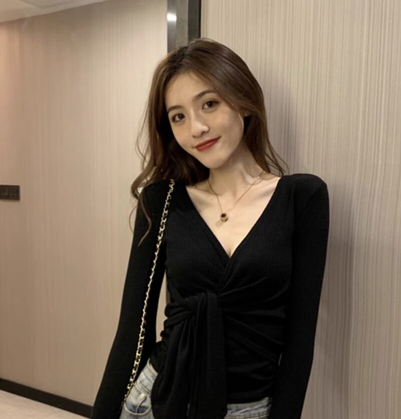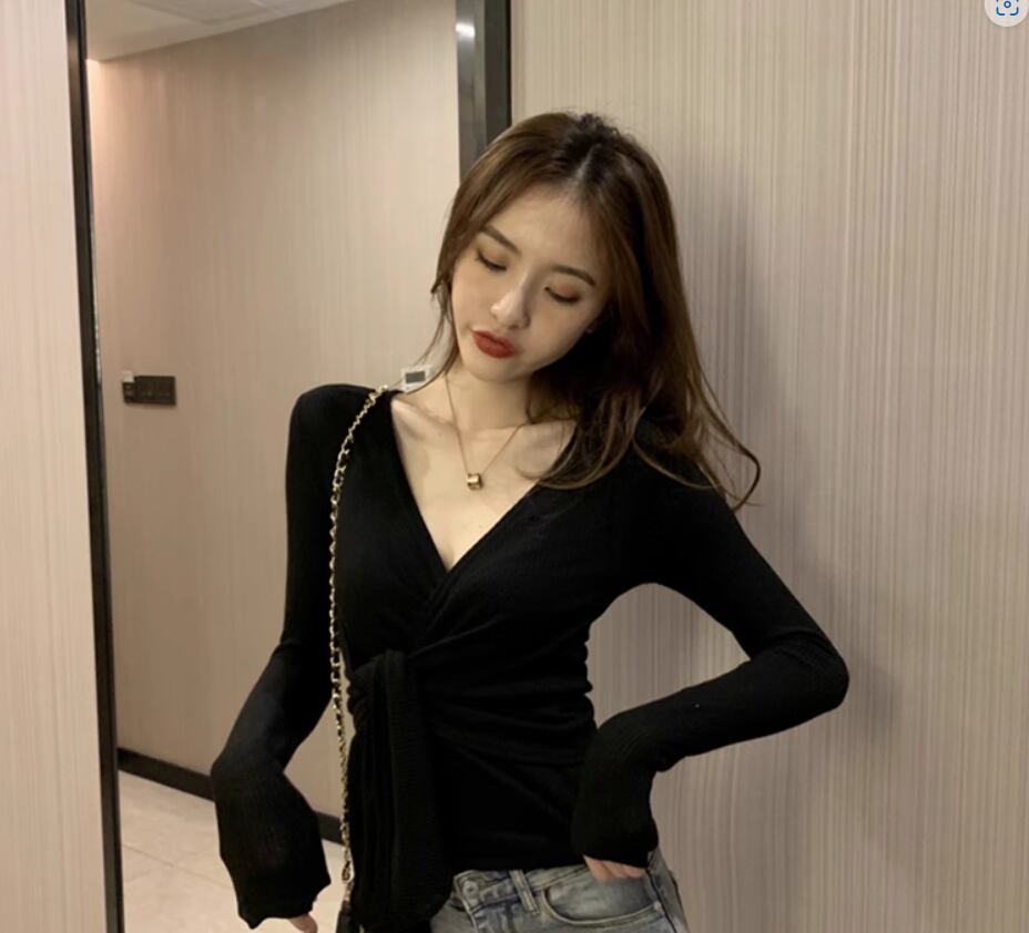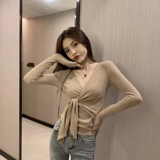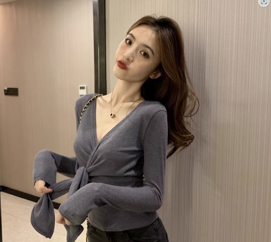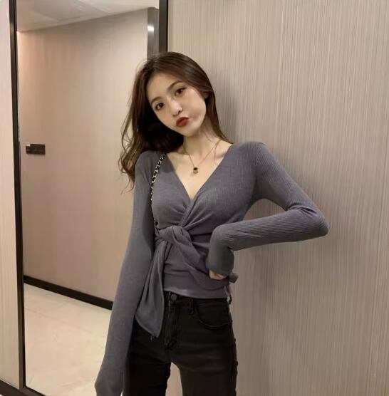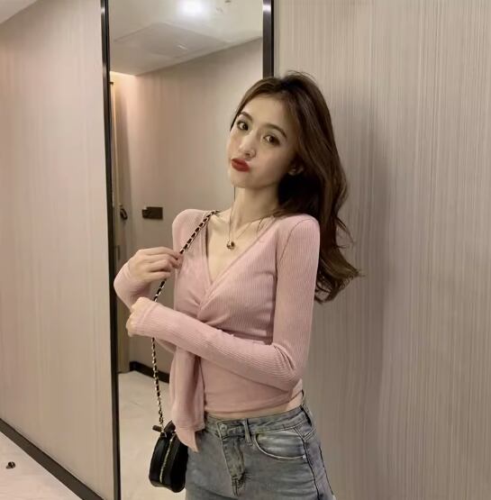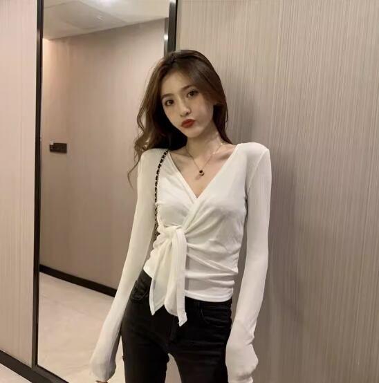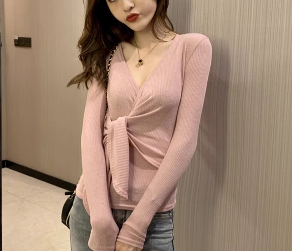 トップス 袖あり 長袖 Vネック カシュクール スリム 細身 ストレート リブ 伸縮性 かわいい きれいめ シンプル カジュアル おしゃれ お洒落 大人女子 こなれ感 無地 春 秋 10代 20代 30代 40代 レディース 女性用 デート お出かけ 休日 着回し 普段使い 楽ちん フリーサイズ 白 ホワイト 黒 ブラック 灰色 グレー ベージュ ピンク