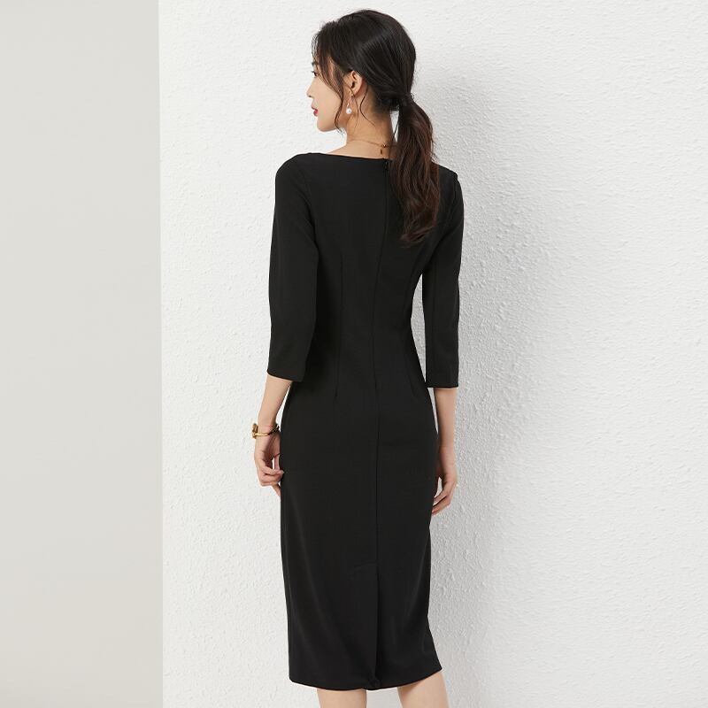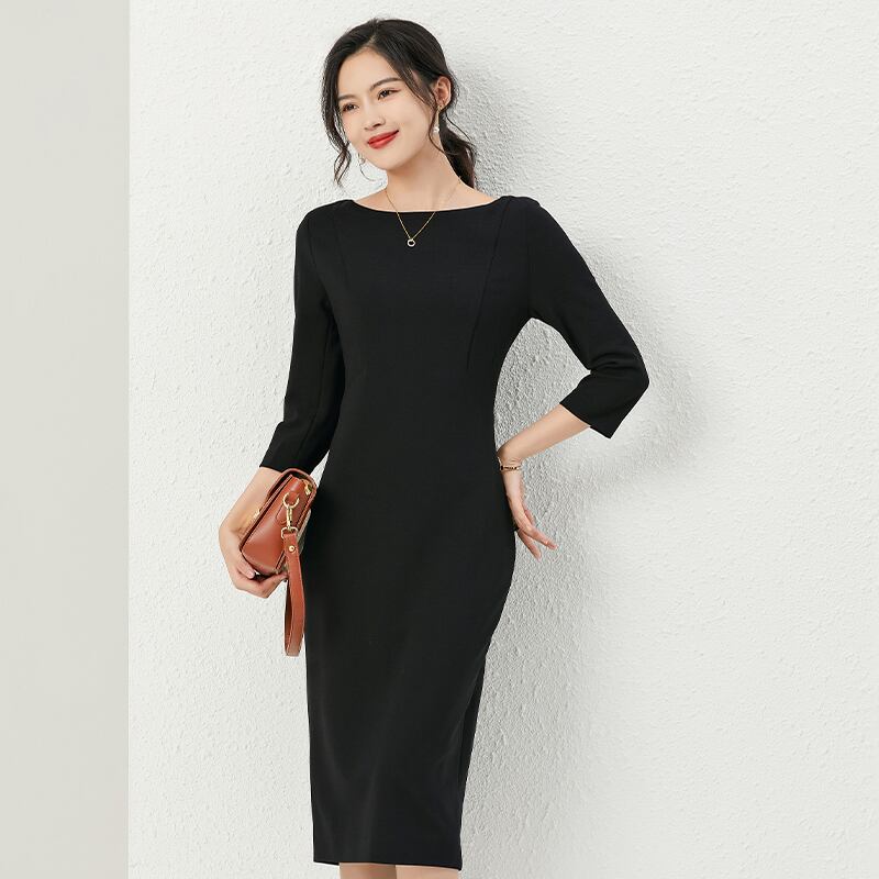 ワンピース ミディアム丈ワンピース ミディアム丈 7分袖 バックスリット かわいい 大人可愛い きれいめ シンプル カジュアル 上品 おしゃれ かっこいい 大人女子 こなれ感 個性的 きちんと 主役級 存在感 キュート クール ナチュラル ベーシック 無地 黒 ブラック オールシーズン レディース 女性用 ママ マタニティOL 通勤 学生 通学 デート お出かけ お泊まり イベント 女子会 休日 カフェ ショッピング 旅行 リゾート コンパ レストラン レイヤード 重ね着 普段使い 着回しS M L XL