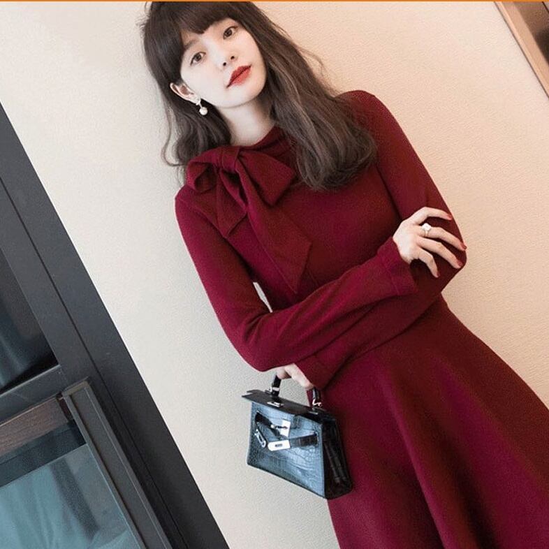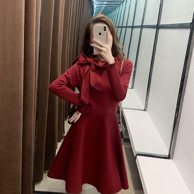 ワンピース ミディアム丈ワンピース ミディアム丈 長袖 Aライン リボン かわいい 大人可愛い きれいめ シンプル カジュアル 上品 おしゃれ かっこいい 大人女子 こなれ感 個性的 きちんと 主役級 存在感 キュート クール ナチュラル ベーシック フォーマル エレガント 無地 秋 冬 レディース 女性用 ママ OL 通勤 学生 通学 デート お出かけ お泊まり イベント 女子会 休日 カフェ ショッピング 旅行 リゾート コンパ レストラン パーティー レイヤード 重ね着 普段使い 着回しS M L