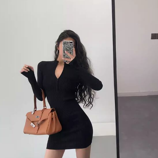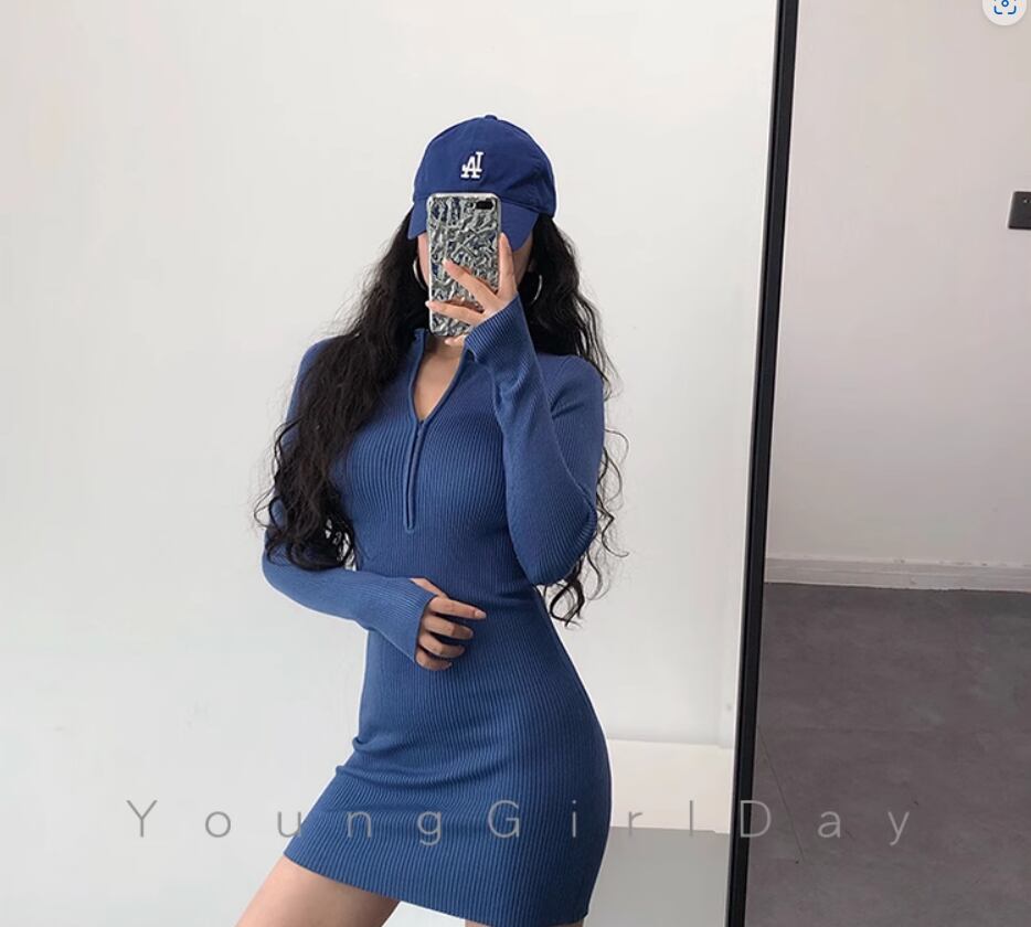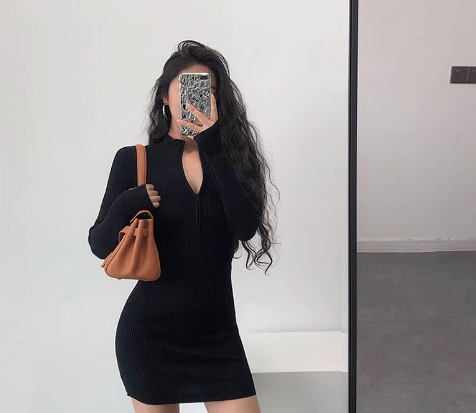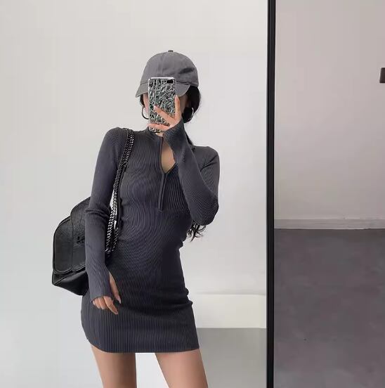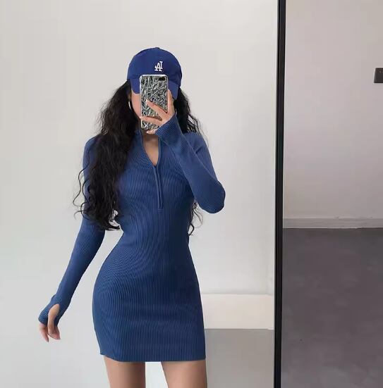 ボディラインを綺麗に魅せてくれるリブニットミニワンピース