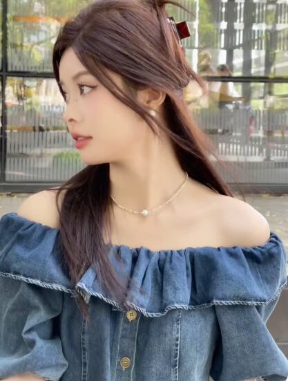 デニム素材なので、オフショルでもカジュアルに着こなせます