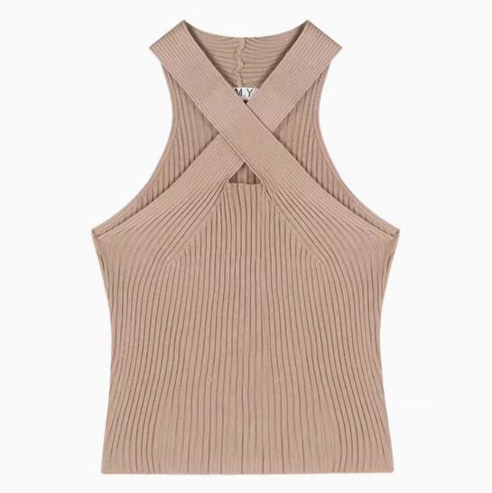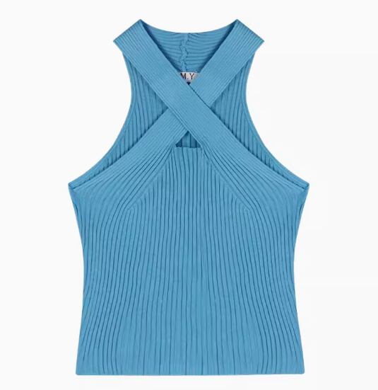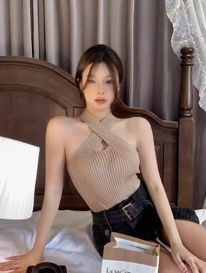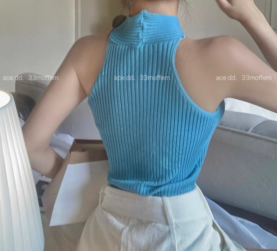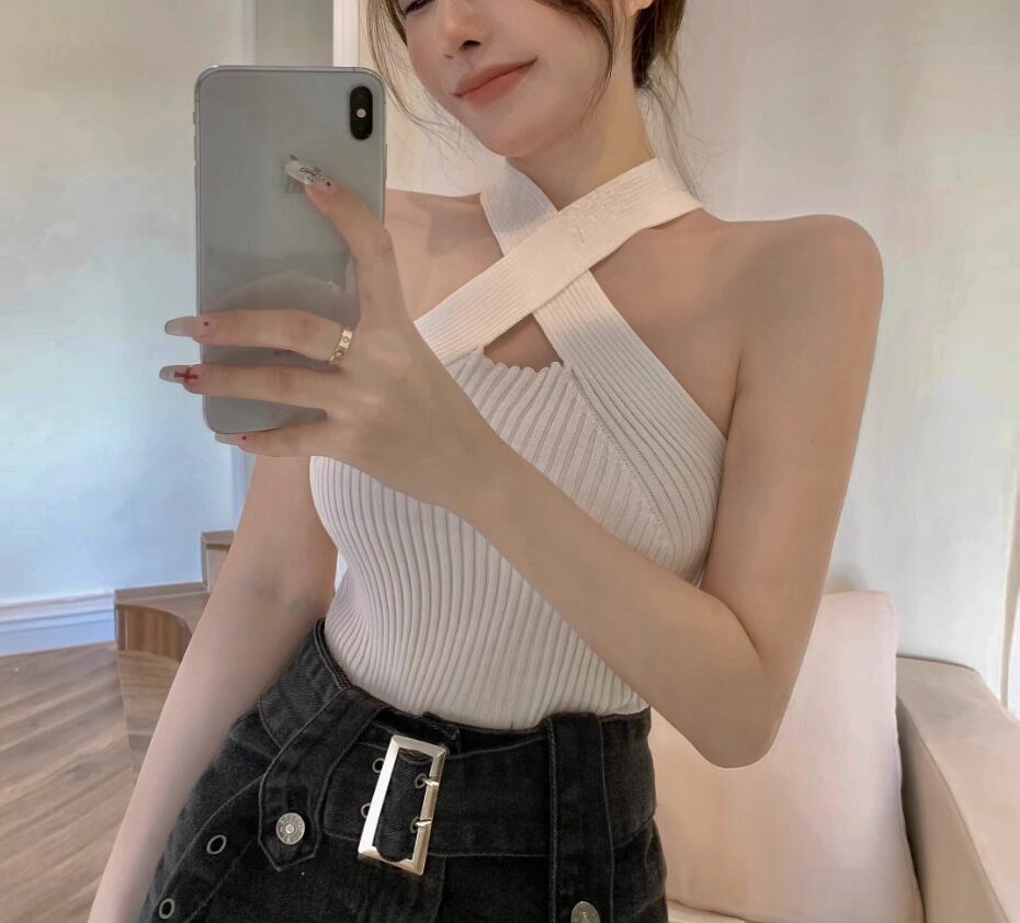 ホルターネックニットトップス 袖なし ノースリーブ ホルターネック スリム タイト 細身 リブニット 伸縮性 きれいめ シンプル おしゃれ お洒落 セクシー 存在感 無地 夏 10代 20代 30代 40代 レディース 女性用 着回し 普段使い フリーサイズ 白 ホワイト 黒 ブラック 青 ブルー カーキ