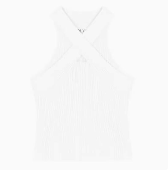 ホルターネックと大胆な肩出しがセクシーなニットトップス