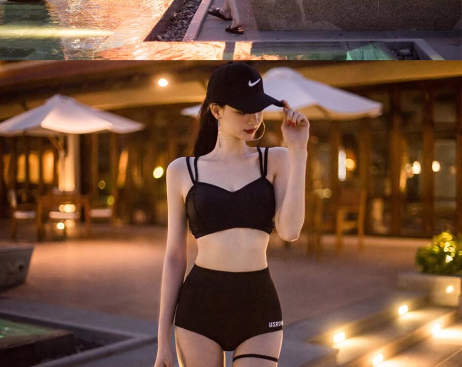 水着 タンキニ セパレート 伸縮性 上下セット 3点セット スリーピース お得 シンプル カジュアル おしゃれ お洒落 クール かっこいい 無地 10代 20代 30代 40代 レディース 女性用 夏 海 ビーチ プール リゾート 旅行 スポーツ S M XL 黒 ブラック