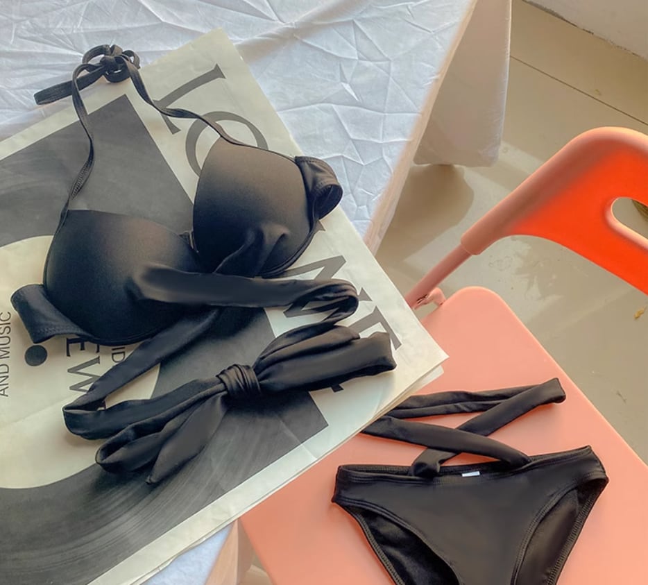 水着 ビキニ セパレート ホルターネック ウエストマーク 伸縮性 谷間魅せ 上下セット 2点セット セクシー シンプル 大人っぽい おしゃれ お洒落 主役級 存在感 女っぽ クール かっこいい 無地 10代 20代 レディース 女性用 夏 海 ビーチ プール リゾート 旅行 スタイルアップ M L XL 白 ホワイト 黒 ブラック