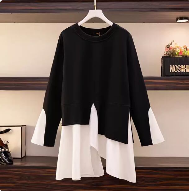 トップス シャツ 長袖 ラウンドネック 重ね着風 かわいい 大人可愛い きれいめ シンプル カジュアル 大人 上品 おしゃれ かっこいい キュート ガーリー ナチュラル ベーシック 大人女子 こなれ感 個性的 主役級 存在感 無地 オールシーズン レディース 女性用 OL 通勤 学生 通学 ママ マタニティ デート お出かけ 女子会 休日 イベント 旅行 ショッピング レストラン ホテル 着回し 普段使い 脚長 L XL 2XL 3XL 4XL5XL6XL