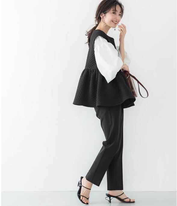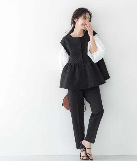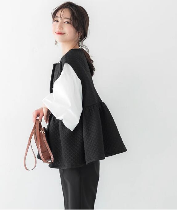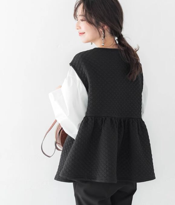 ベスト キルティング Uネック レディース かわいい 大人可愛い きれいめ シンプル カジュアル 上品 おしゃれ かっこいい こなれ感 ラフ メンズライク 通勤 デート お出かけ リゾート 旅行 女子会 休日 ショッピング ブラック フリーサイズ