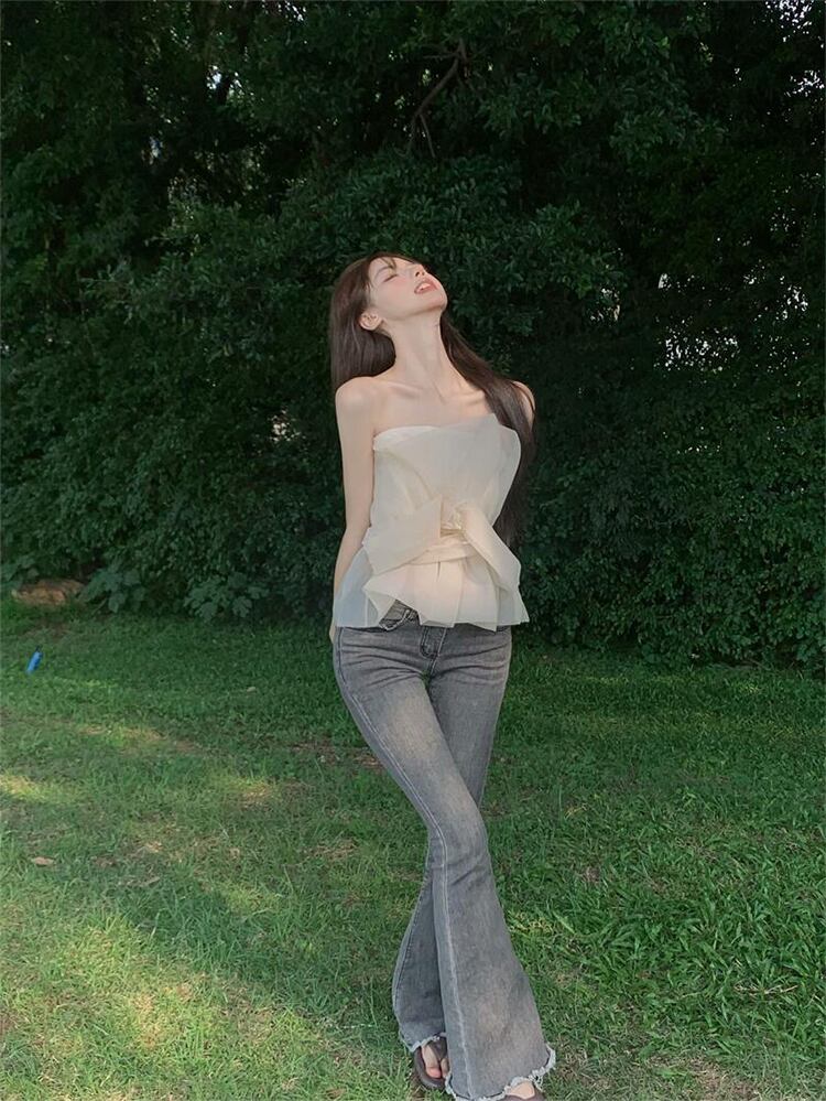 レディース トップス ショート ノースリーブ オフショルダー シフォン ウエストマーク ふわふわ かわいい 大人可愛い きれいめ シンプル カジュアル 上品 おしゃれ ガーリー ラブリー キュート セクシー 無地 夏 謝恩会 デート パーティー イベント 韓国 コーデ モテ トレンド 流行 インスタ映え S M L XL ホワイト