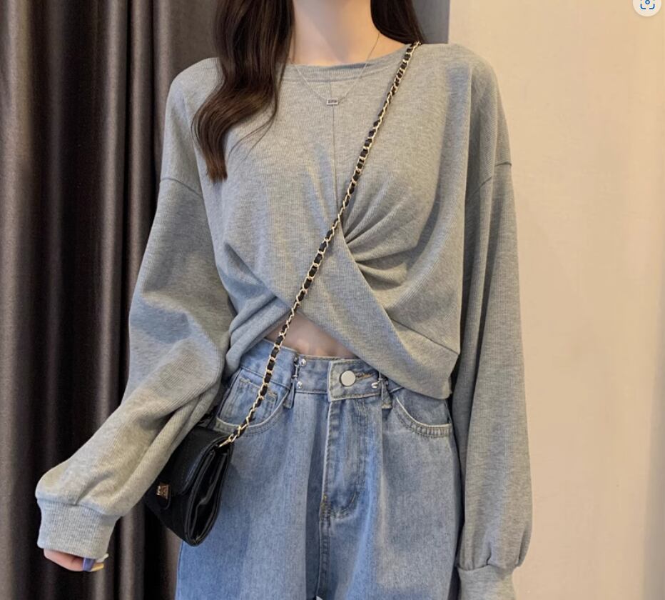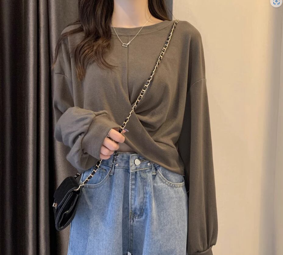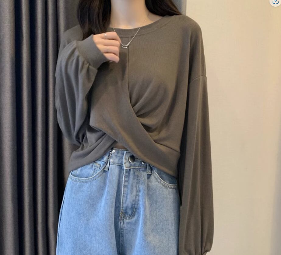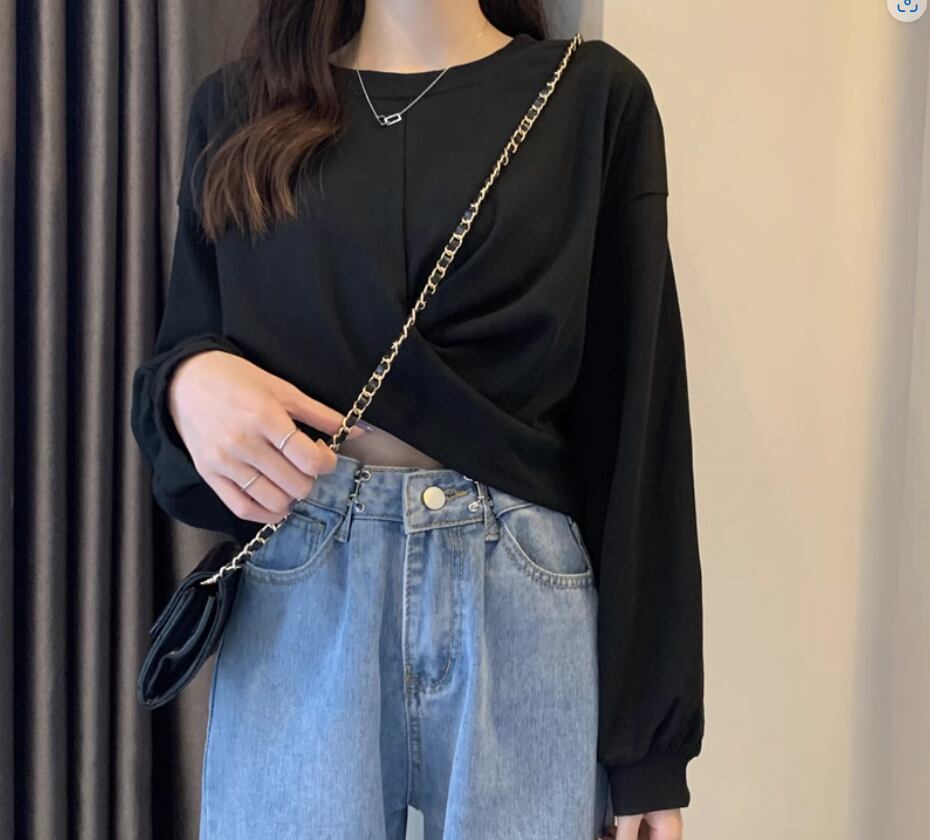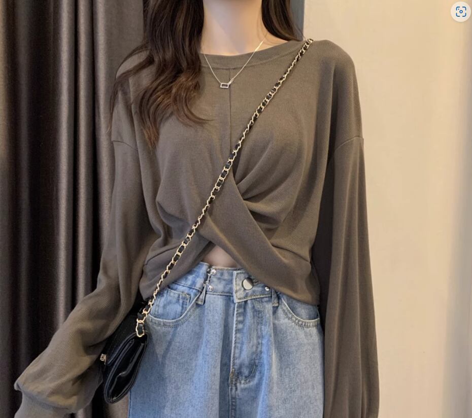 裾のクロスデザインが立体的でおしゃれな長袖トップス