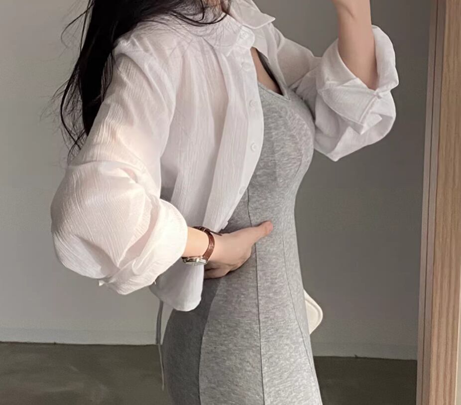 透け感のある生地でさっと羽織れるショート丈ブラウス
