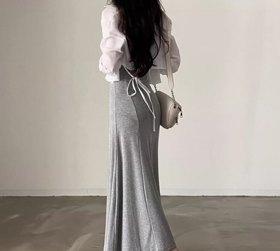 やや短くなっている後ろの中央は、リボンを結ぶことでメリハリのある着こなしに!