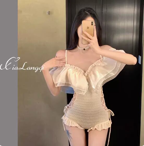 この水着は、大人可愛さとセクシーさを兼ね備えたワンピース水着です。パフスリーブと胸元の谷間魅せデザインが女性らしい印象を与え、シフォン素材が上品な透け感を演出します。高いハイウエストで脚長効果も抜群。背中開きで後ろ姿も華やかに演出できます。リゾートやプール、海、バカンスなどの場面で活躍し、インスタ映えも間違いなし!Mから2XLのサイズ展開で、幅広い年代の女性におすすめです。魅力的なカラーバリエーションを揃えていますので、ぜひお好みの色をお選びください。