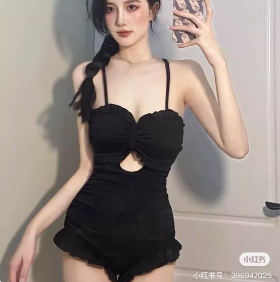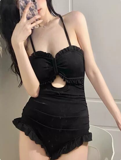 胸元や背中が少しセクシーな、可愛らしいワンピース水着。