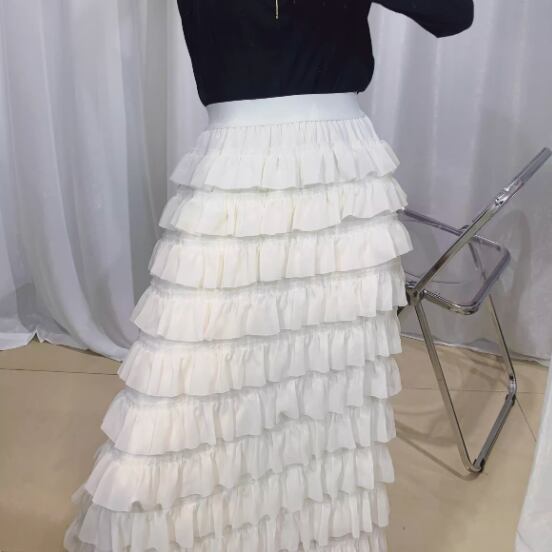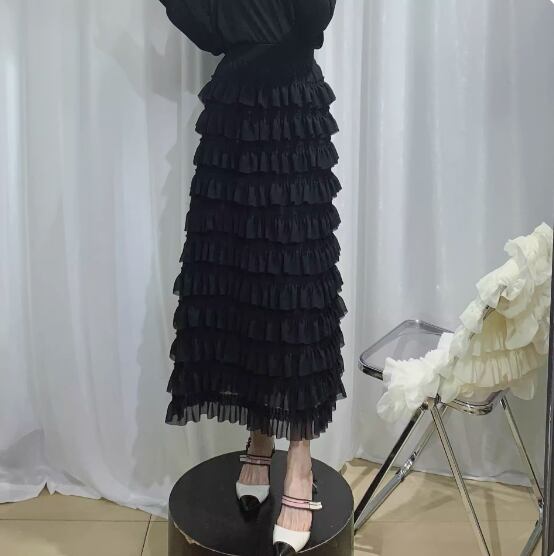エアリーな風を感じさせるフレアスカートが登場しました!春にぴったりのシフォン素材で、軽やかな動きを演出します。ウエストはゴムで楽ちんな着心地で、着痩せ効果も。ロング丈のデザインで大人っぽさも演出できます。おしゃれなカジュアルコーデやフェミニンなスタイリングにもマッチする3色展開。アプリコット、ブラック、ホワイトの豊富なカラーバリエーションで、お気に入りの一枚を見つけてください。