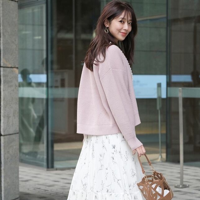 ミディアム丈のデザインで、大人可愛い雰囲気を演出します。