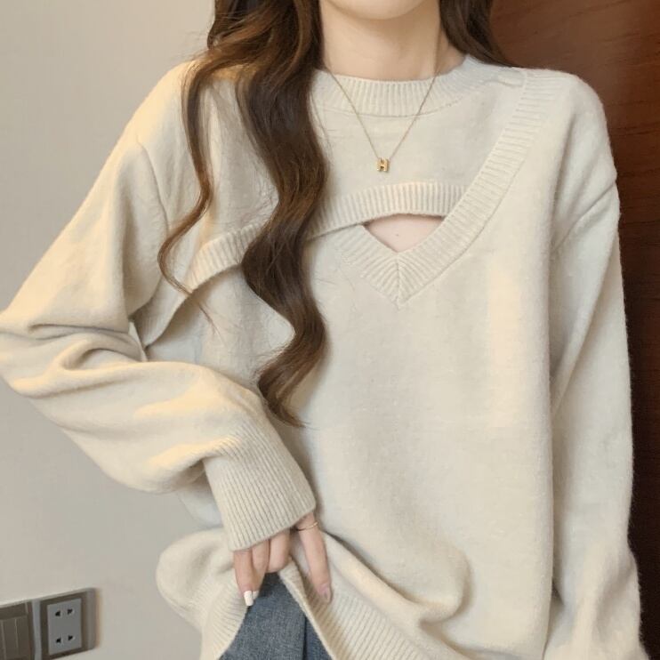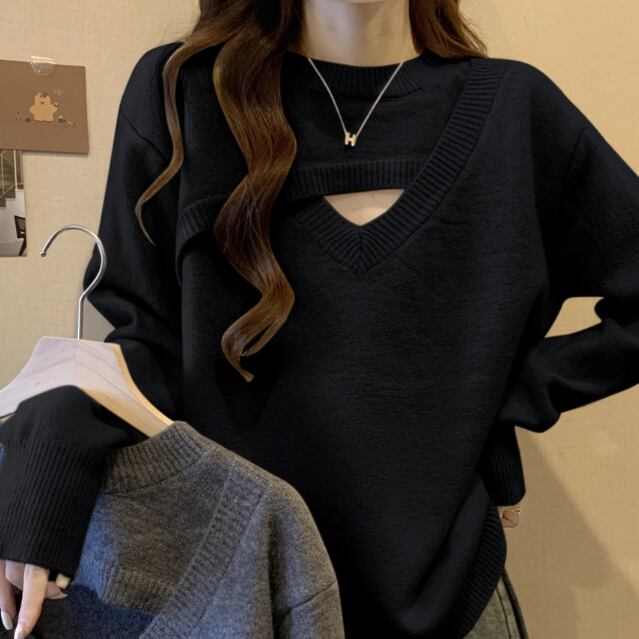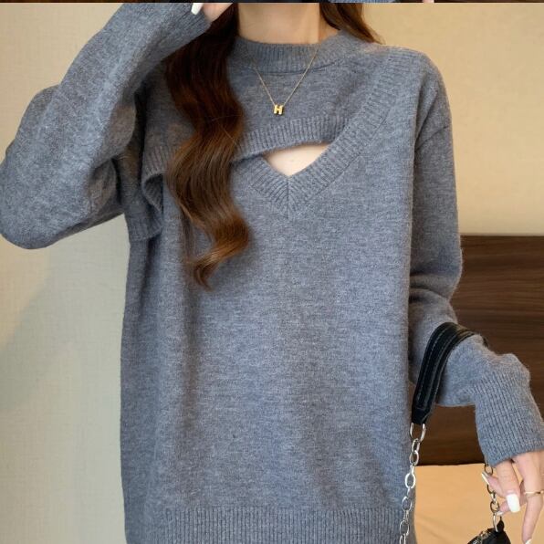 トップス セーター プルオーバー ミディアム丈 長袖 ラウンドネック 胸開き かわいい 大人可愛い きれいめ シンプル 上品 おしゃれ かっこいい レトロ こなれ感 個性的 主役級 存在感 抜け感 秋 冬 キュート ナチュラル ベーシック フェミニン セクシー 無地 レディース 女性用 ママ OL 通勤 オフィス 学生 通学 デート お出かけ お泊まり イベント 女子会 休日 カフェ ショッピング レストラン コンパ レイヤード 重ね着 普段使い 着回し M L XL 2XL 3XL 4XL 暖かい