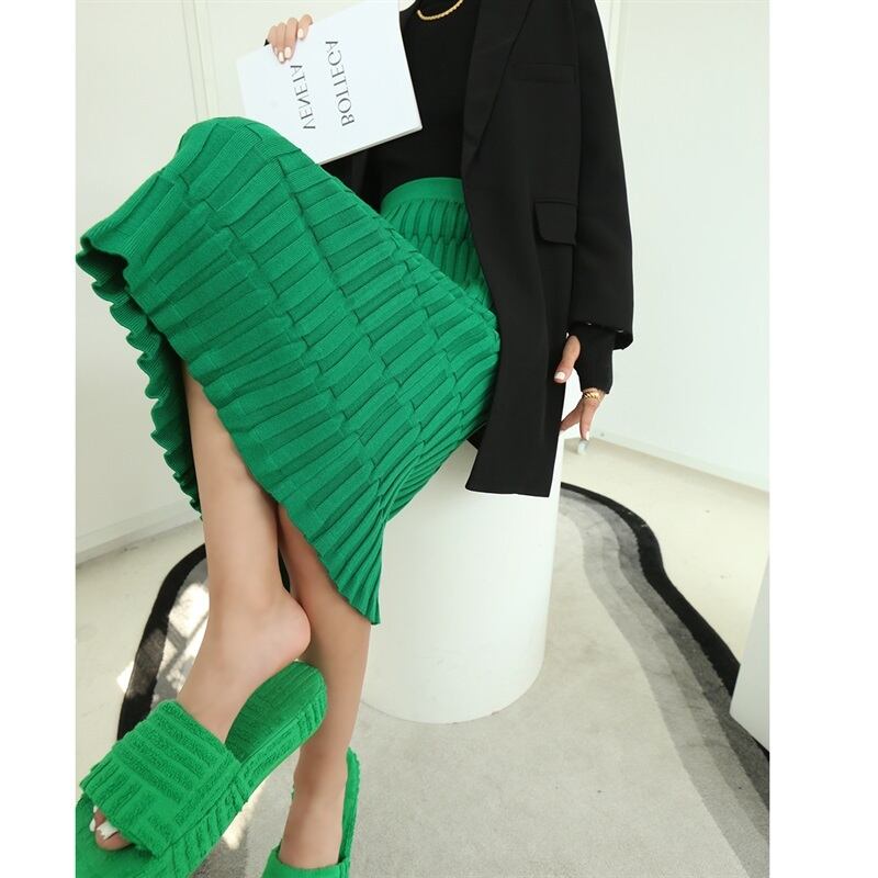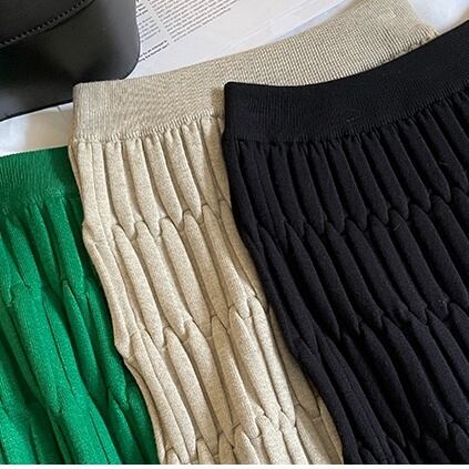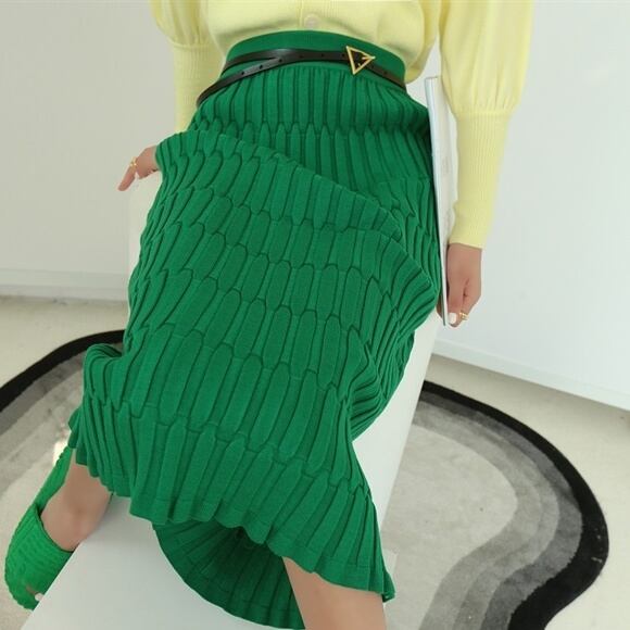 女性らしさを引き立てるミモレ丈で、大人可愛いスタイルを演出します。