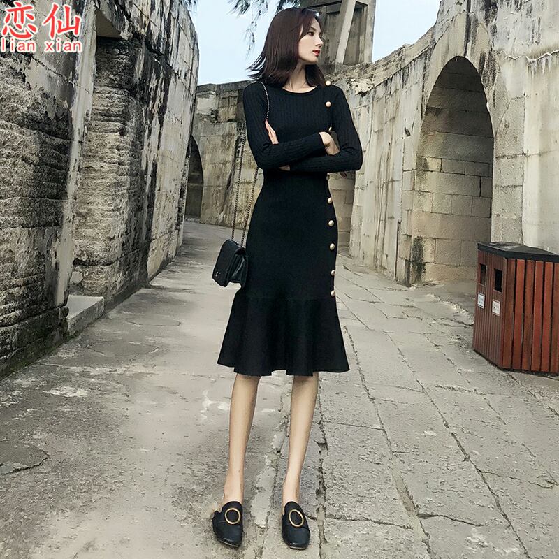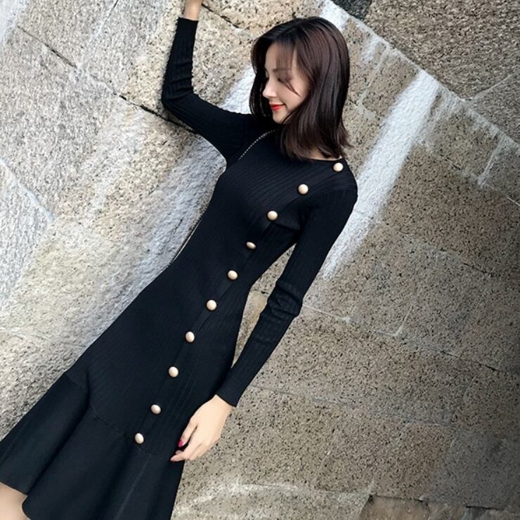 ワンピース ミディアム丈ワンピース ミディアム丈 長袖 ラウンドネック フィッシュテールスカート かわいい 大人可愛い きれいめ シンプル カジュアル 上品 おしゃれ かっこいい 大人女子 こなれ感 個性的 きちんと 主役級 存在感 キュート クール ナチュラル ベーシック 無地 黒 ブラック レディース 女性用 ママ OL 通勤 学生 通学 デート お出かけ お泊まり イベント 女子会 休日 カフェ ショッピング 旅行 リゾート コンパ レストラン レイヤード 重ね着 普段使い 着回しS M L XL