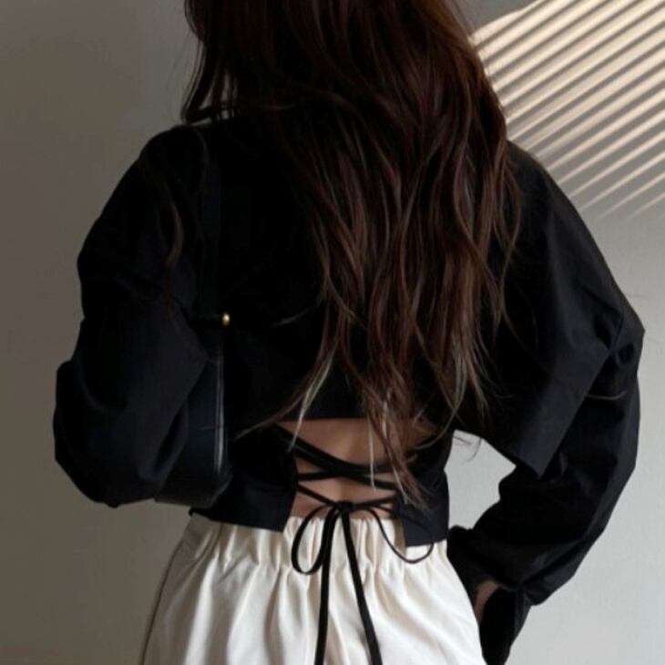 トップス シャツ ミディアム丈 長袖 角襟 前開き ボタン 背中開き バックシャン バックリボン かわいい 大人可愛い きれいめ シンプル 上品 おしゃれ かっこいい レトロ こなれ感 きちんと 個性的 主役級 存在感 抜け感 ラフ 春 夏 キュート ガーリー セクシー ナチュラル レディース 女性用 ママ OL 通勤 オフィス 学生 通学 デート お出かけ お泊まり イベント 女子会 休日 アウトドア カフェ ショッピング レストラン コンパ レイヤード 重ね着 普段使い 着回し ワンサイズ モテ