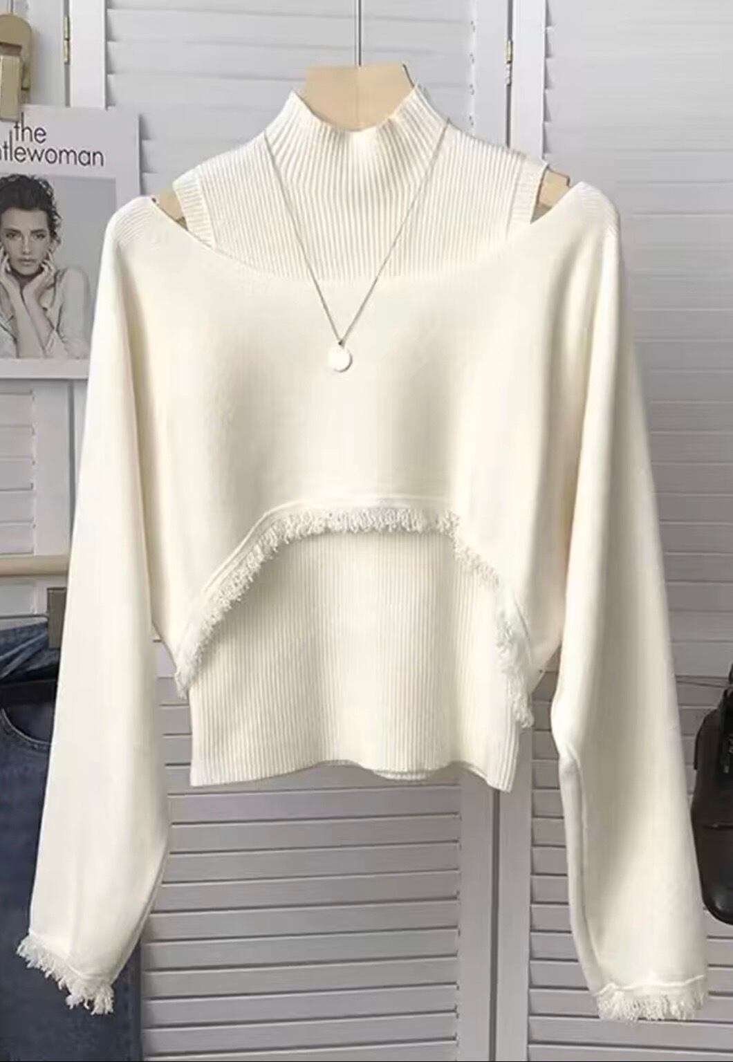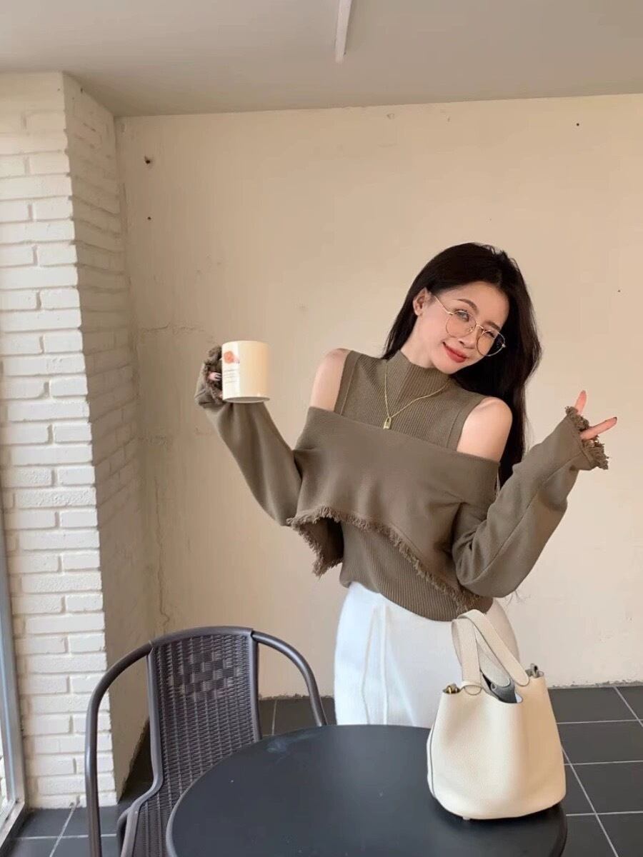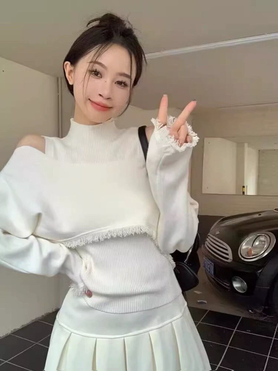 2点セット トップス セーター 長袖 タートルネック ミディアム丈 オフショルダー かわいい 大人可愛い きれいめ シンプル カジュアル 大人 上品 おしゃれ かっこいい レトロ クール モード系 大人女子 こなれ感 個性的 主役級 存在感 キュート メンズライク ボーイッシュ 無地 オールシーズン レディース 女性用 OL 通勤 学生 通学 ママ デート お出かけ 女子会 休日 イベント 旅行 アウトドア ショッピング レストラン ホテル S M L XL 2XL